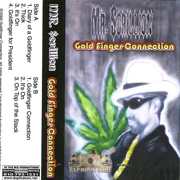 Genre: Rap Category: Cassette Tape Year: 2000 Record Label: Goldfinger Connection Album Art By: In The Mix Productions No Barcode: Yes Area Code: 810 City: Detroit State: Michigan Tags: Mr. Scrillion